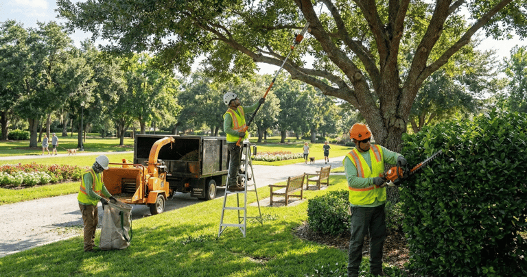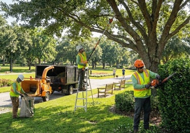 Brush clearing, invasive species removal, and tree mitigation for overgrown properties.